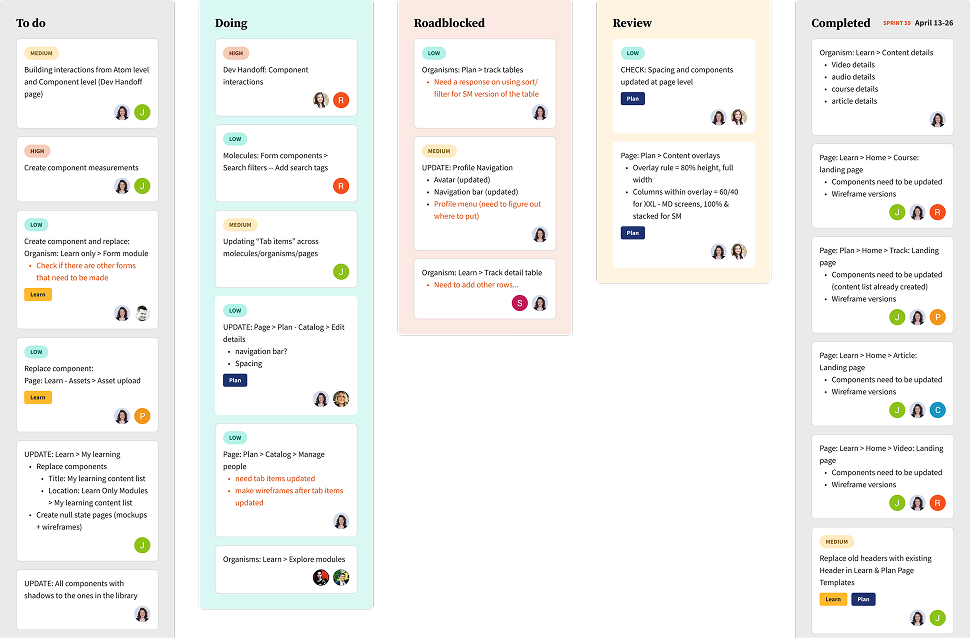 - A Kanban board for design-system sprints (to do, doing, blocked, review, completed)